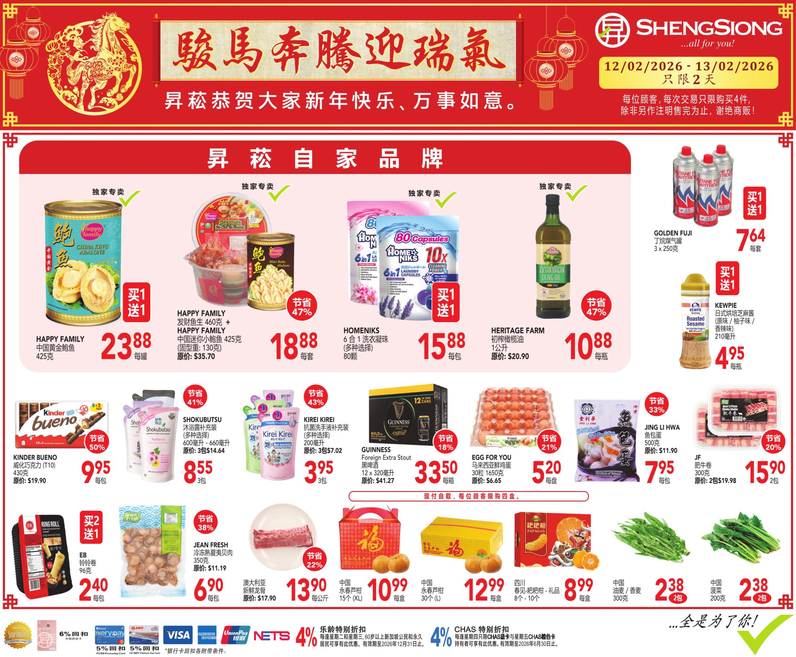 Home Promotions Newspaper Advertisement 2 Days Special 12 Feb 2026 – 13 Feb 2026 2 Days Special 12 Feb 2026 – 13 Feb 2026 February 12, 2026 3073 Facebook Twitter Google+ Pinterest WhatsApp RELATED ARTICLESMORE FROM AUTHOR 2 Days Special 10 Feb 2026 – 11 Feb 2026 “UnionPay x Sheng Siong” Mega Promotion 23 Jan 2026 – 26 Feb 2026 “POSB x Sheng Siong Lunar New Year Campaign” 16 Jan 2026 – 16 Feb 2026 CNY HAMPER 2 Jan 2026 to 3 Mar 2026