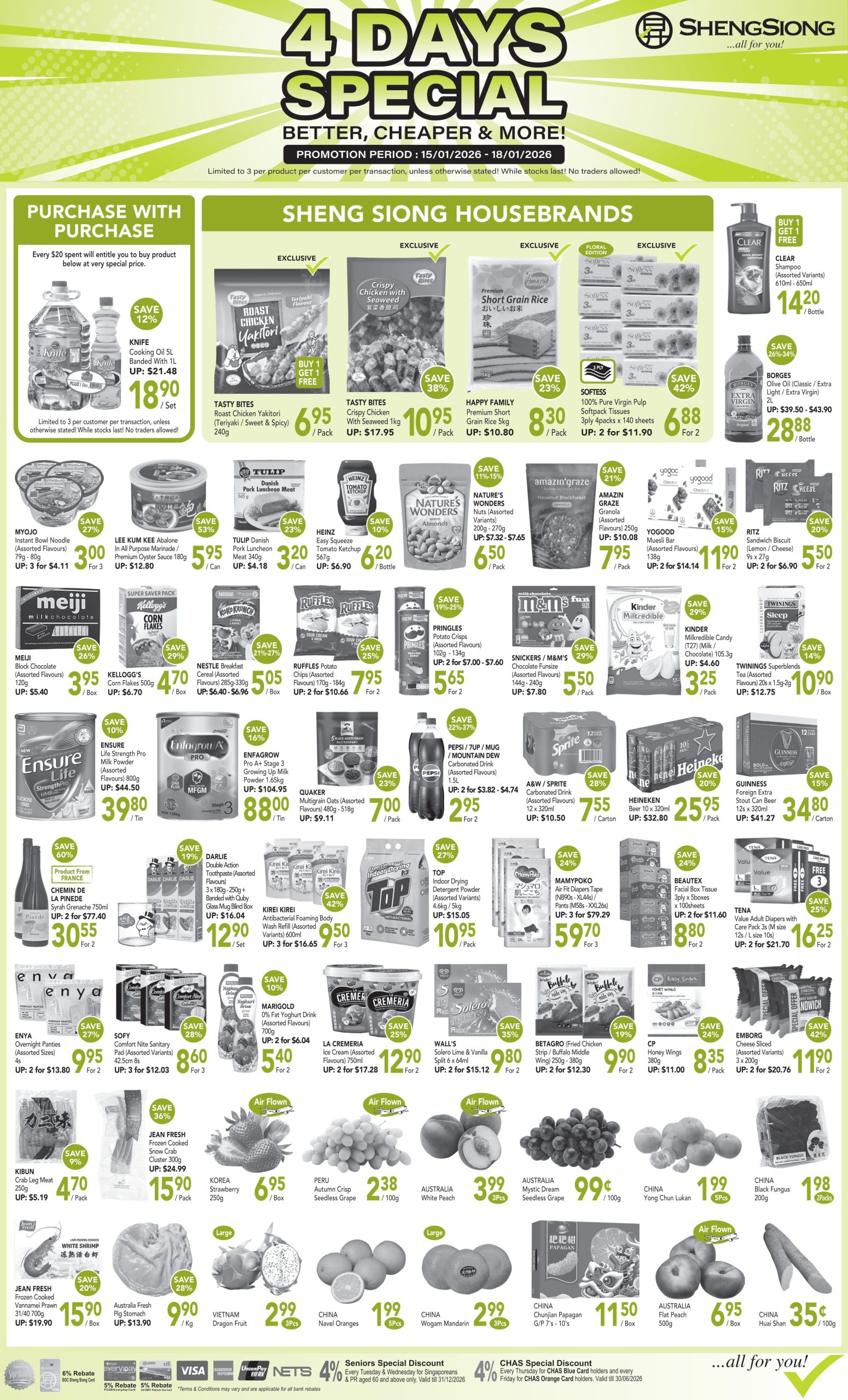Home Promotions Newspaper Advertisement 4 Days Special 15 Jan 2026 – 18 Jan 2026 4 Days Special 15 Jan 2026 – 18 Jan 2026 January 15, 2026 1479 Facebook Twitter Google+ Pinterest WhatsApp DOWNLOAD RELATED ARTICLESMORE FROM AUTHOR CNY HAMPER 2 Jan 2026 to 3 Mar 2026 Spring Cleaning 02 Jan 2026 – 22 Jan 2026 CNY CATALOGUE 01 Jan 2026 – 03 March 2026 Mega Promotion 25 Dec 2025 – 22 Jan 2026 4% Senior Citizen Discount Extended to 2026!
