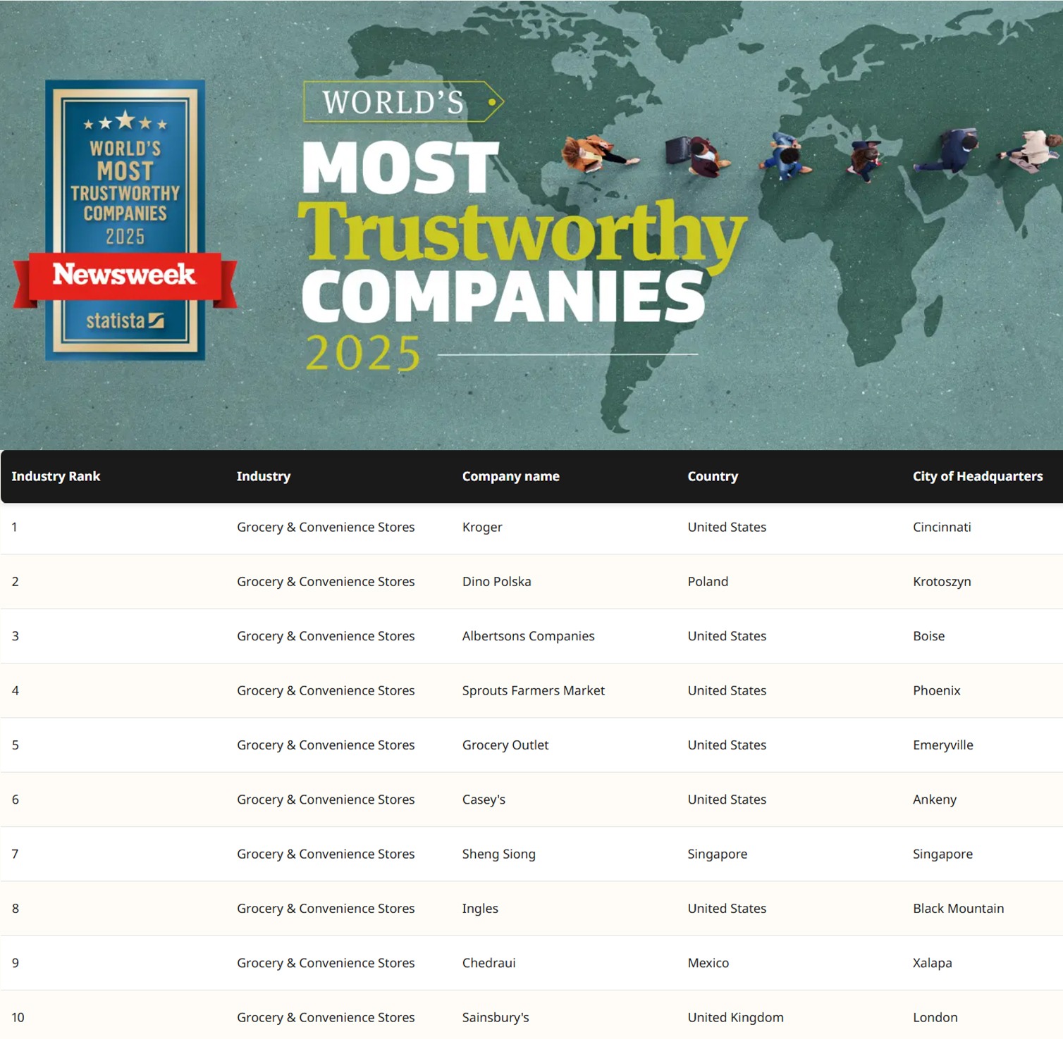 list of the World’s Most Trustworthy Companies.
