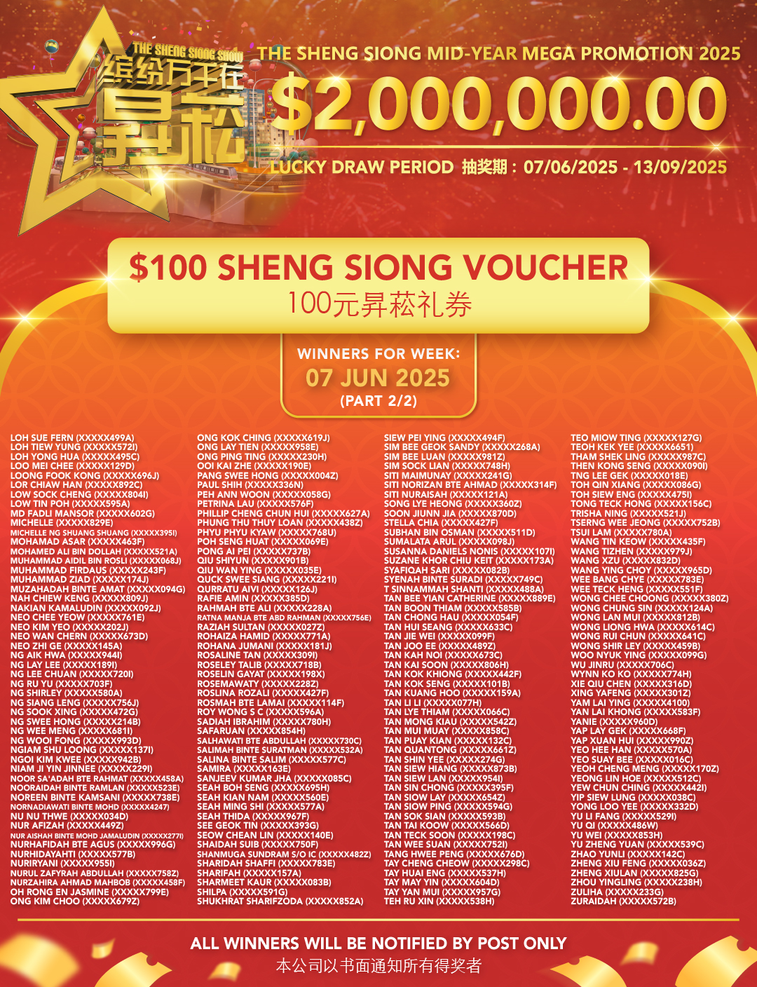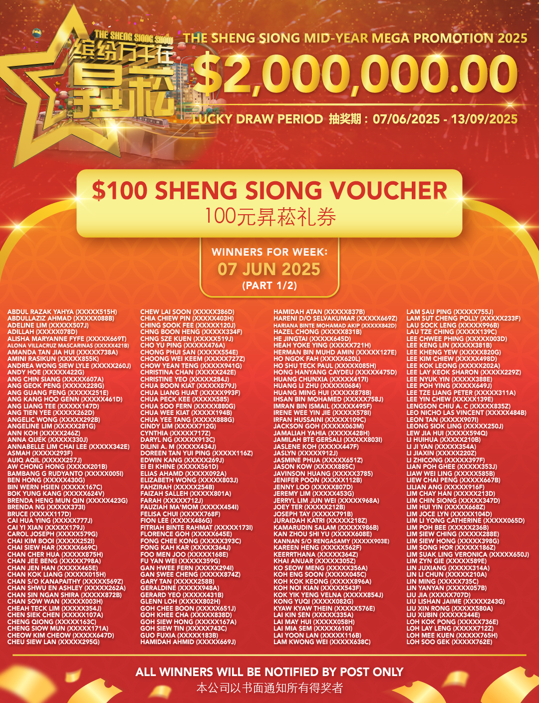 Home News Sheng Siong Show EP1 Winner List (SS 37) Sheng Siong Show EP1 Winner List (SS 37) June 13, 2025 4508 Facebook Twitter Google+ Pinterest WhatsApp RELATED ARTICLESMORE FROM AUTHOR Sheng Siong Group’s net profit increases 12.0% to S$43.8 million for 3Q FY2025 Sheng Siong Show EP14 Winner List (SS 37) Sheng Siong Show EP13 Winner List (SS 37) Sheng Siong Show EP12 Winner List (SS 37) Sheng Siong Show EP11 Winner List (SS 37)
