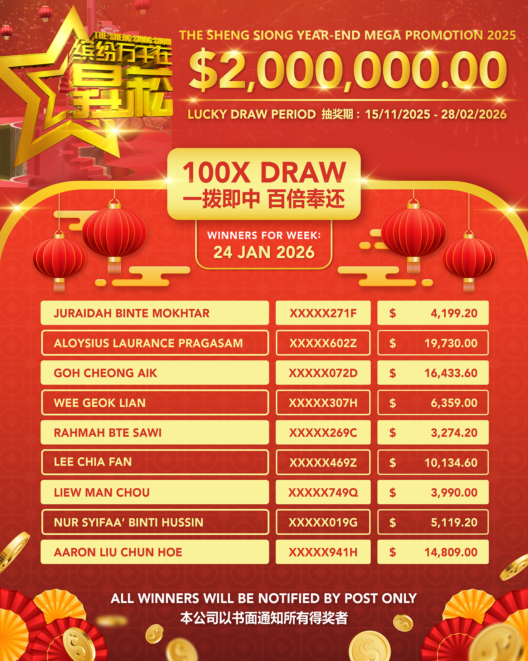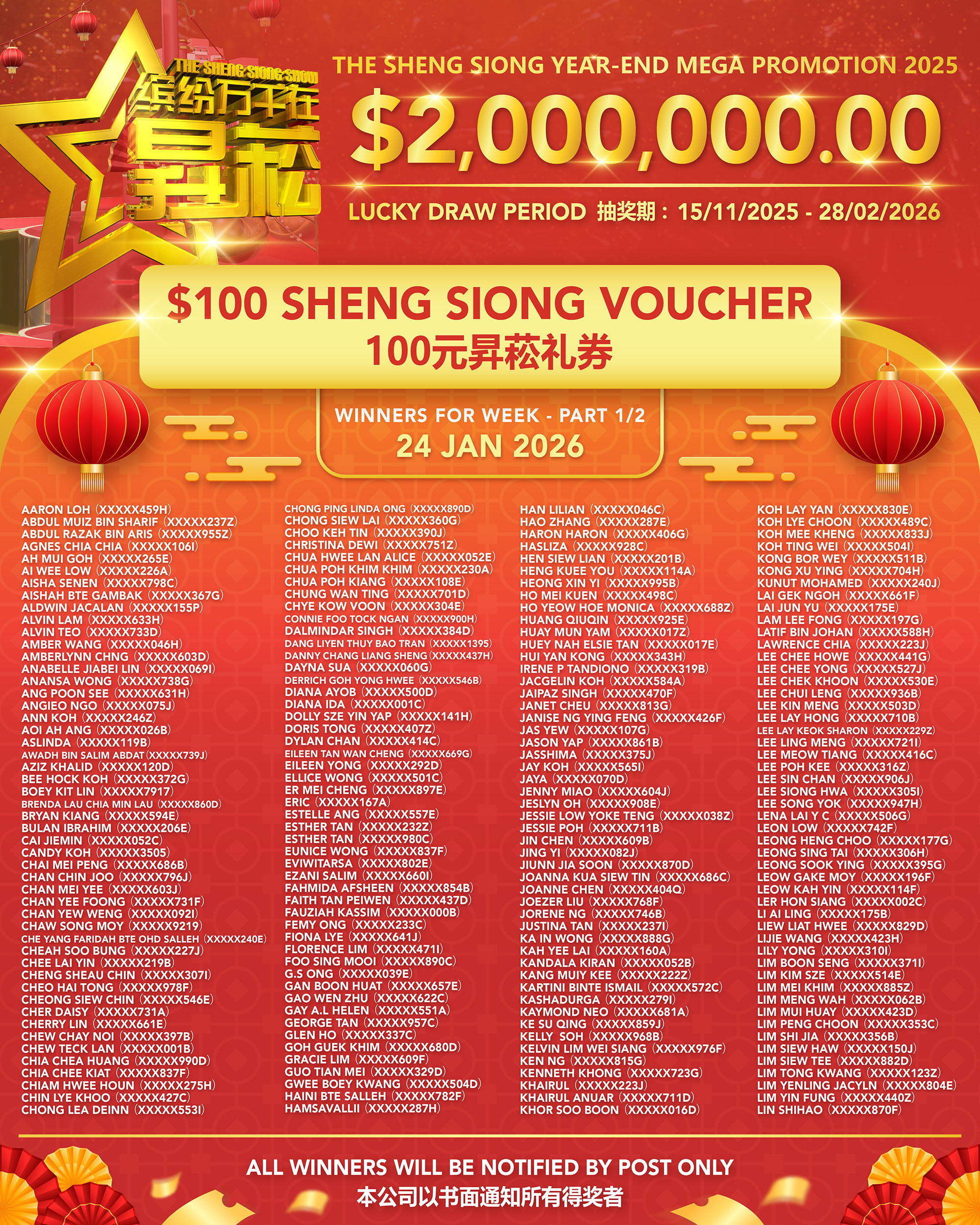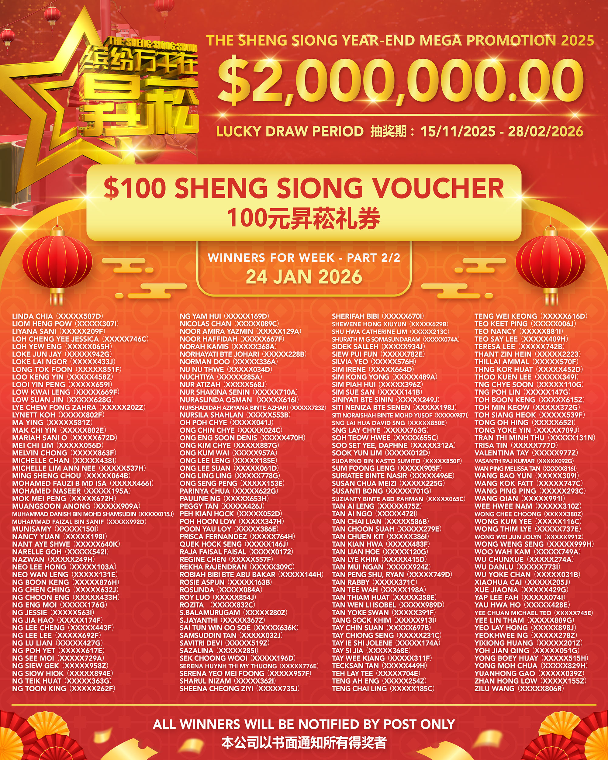 Home News Sheng Siong Show EP11 Winner List (SS 38) Sheng Siong Show EP11 Winner List (SS 38) January 30, 2026 59 Facebook Twitter Google+ Pinterest WhatsApp RELATED ARTICLESMORE FROM AUTHOR Sheng Siong Show EP10 Winner List (SS 38) CNY 2026 Operating Hours Sheng Siong Show EP8 Winner List (SS 38) Sheng Siong Show EP7 Winner List (SS 38) Sheng Siong Show EP6 Winner List (SS 38)